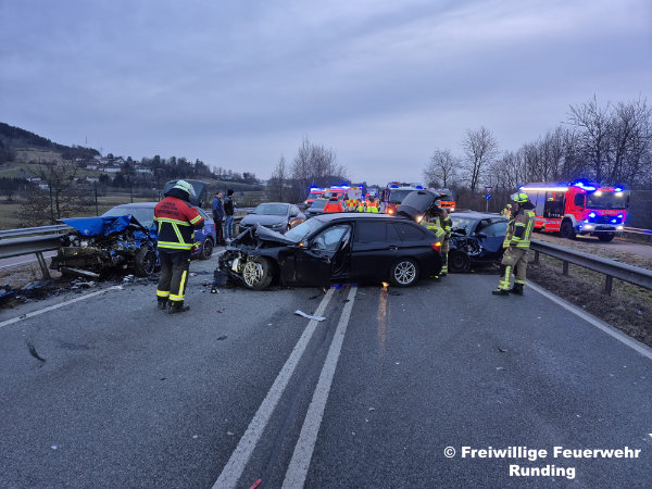 Verkehsunfall B20 Am 24. Februar wurden wir zu einem Verkehrsunfall auf die B20 alarmiert. Zwei PKW prallten frontal gegeneinander.