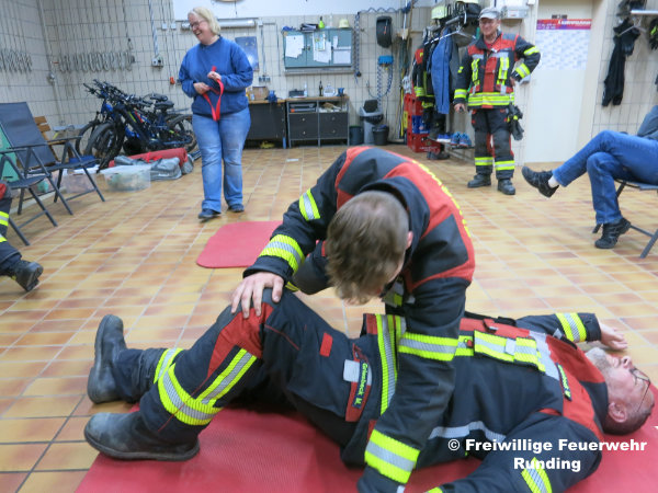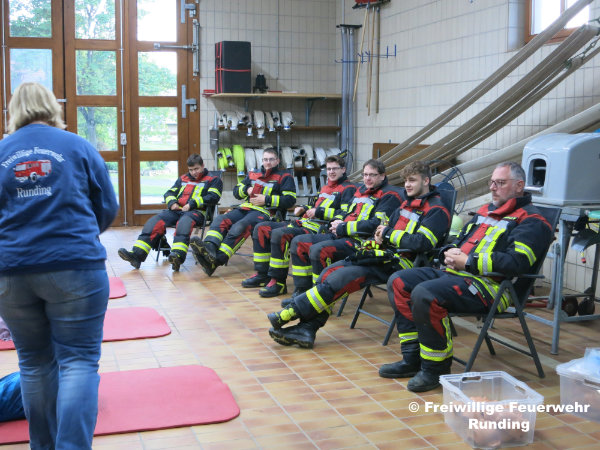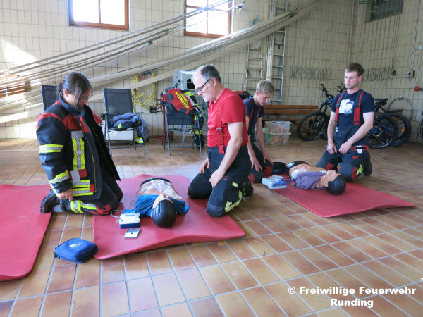 Am 23. Mai fand eine Einzelübung statt. In 3 Stationen wurden diese Übungsinhalte trainiert: Auffinden einer bewusstlosen Person mit Herz-Lungen-Wiederbelebung und Einsatz eines Defibrilators, Schaumeinsatz und Ausrüsten von Atemschutzgeräteträgern während der Fahrt.