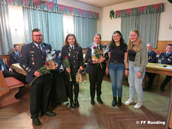 Sonja Griesbeck, Maria Bräu und Kai Vieth stellten sich bei den anstehenden Neuwahlen nicht mehr zur Verfügung und bedankten sich bei allen für die Unterstützung während ihrer Amtszeit, in der sie 20 Jugendliche in den aktiven Dienst übergeben konnten. Da schon der allerkleinste Nachwuchs in Runding ganz begeistert von der Feuerwehr ist, wird auch diesen das ganze Jahr über einiges geboten.